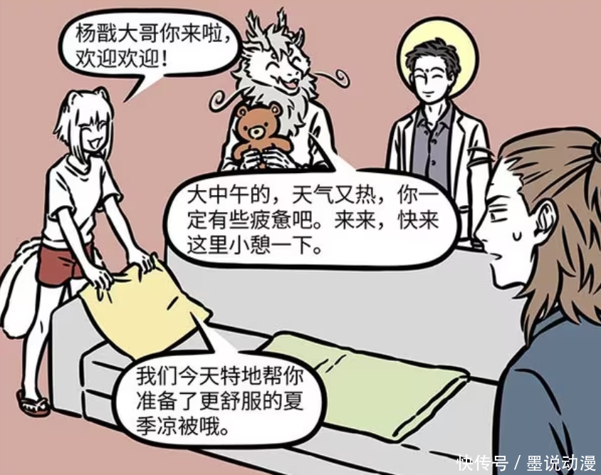 《非东谈主哉》漫画版中,杨戬作念梦是件意旨的事情,他不错将梦乡用天眼投射出来。不雅音蓝本不可爱杨戬一直来公司睡觉,关联词看到此情此景,却变得很接待他。不雅音、敖烈和九月齐把他的梦乡当电影,何况照旧系列电影。