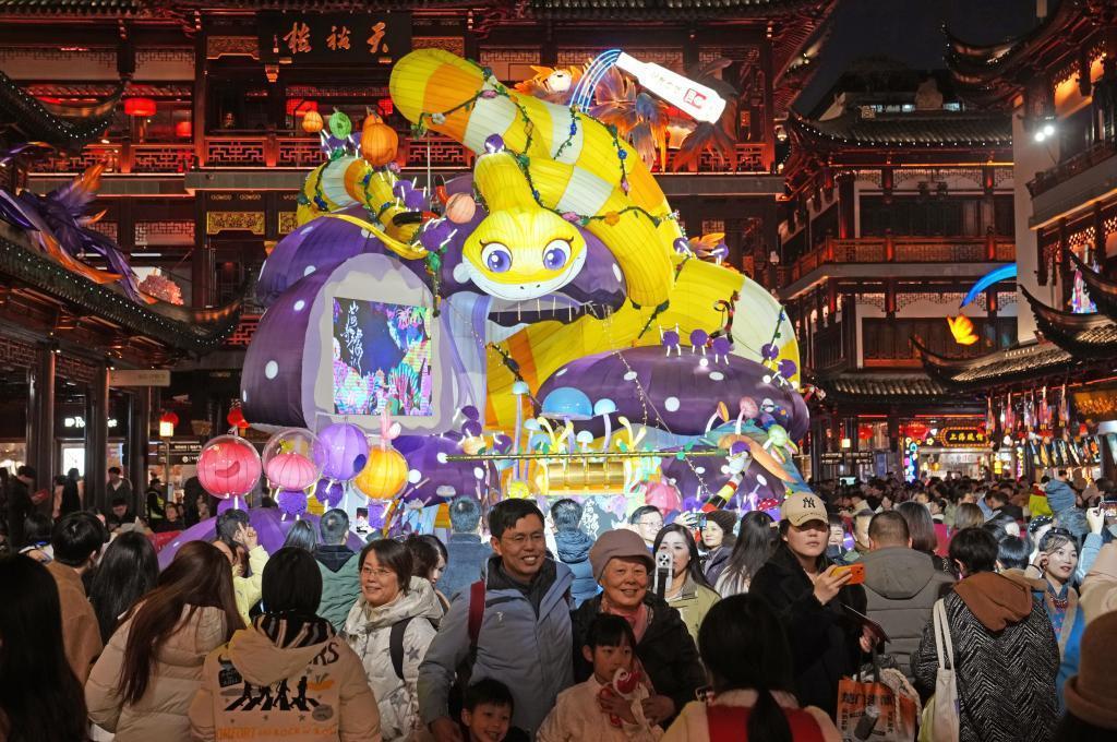 2025年1月1日,东谈主们在生肖蛇年主题灯组前留影。新华社记者 刘颖 摄