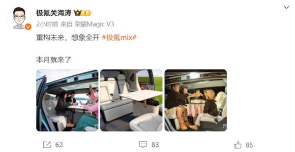 随后,极氪智能科技副总裁杨大成对此进行了复兴,其示意,这次宣传只是为了展示极氪MIX所配备的高效新风系统,迷漫应酬车内的气息问题,何况在他看来,在车内吃暖锅是一种露营的新体验。不单是这一场景,在发布会上,还会揭晓更多使用场景。