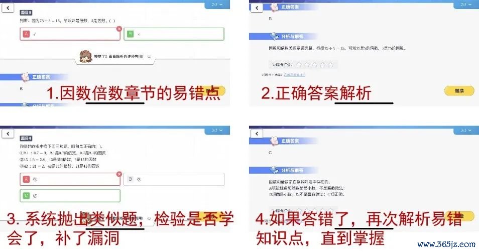 如上图所示,孩子一朝作念错了,系统会弹出知道,然后弹出止境访佛的题 (普娃很有可能屡次跌跟头) ——直到补上罅隙。