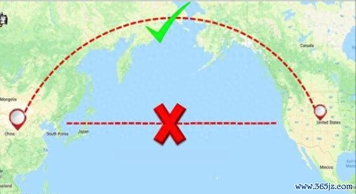 当先,有必方法悟地球的形态。它并非平坦,而是一个球体。在这种局面下,直线并不是两点之间的最短旅途。本色上,最优门道是沿着大圆的曲线走。因此,尽管名义上看来,横跨太平洋更为径直,但在本色翱游中,从中国到好意思国的极地航路反而更为高效。这种设施被称作“大圆航路”,在远程航班中时时被遴选。