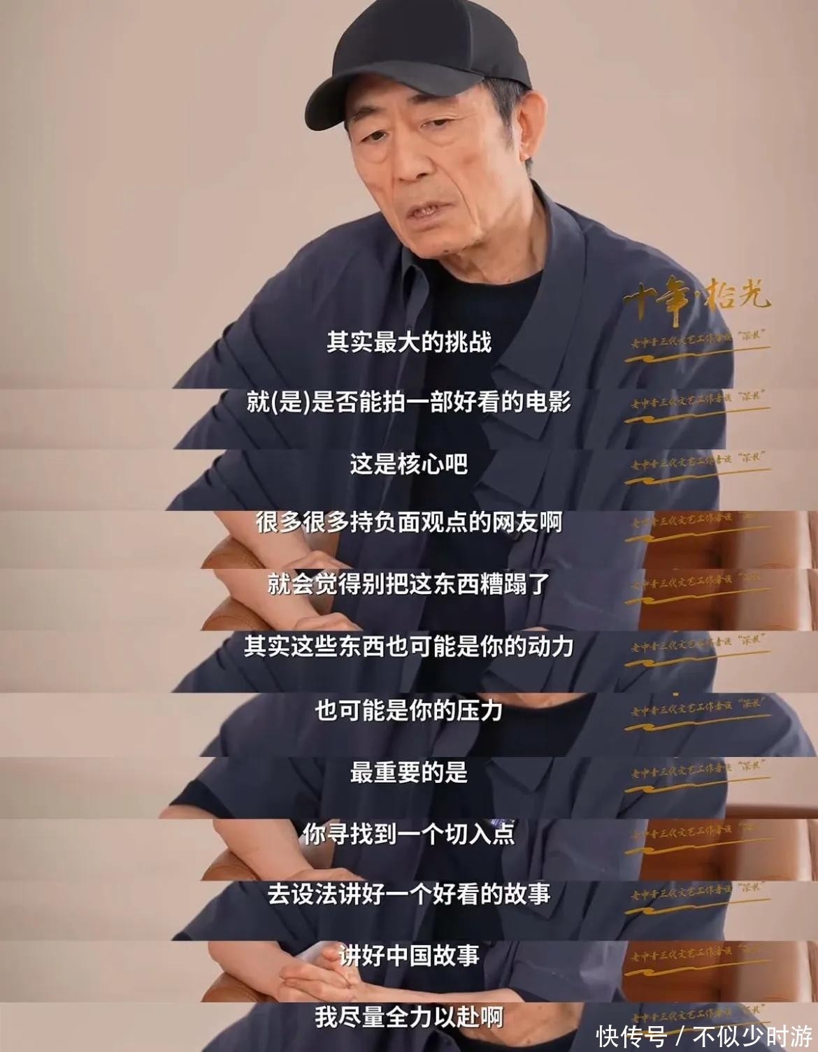 49. 当同辈导演步入晚年聘用减产以致千里寂,几年难出一部作品之时,张艺谋却照旧保持着高频产出节律,面貌接连不停。