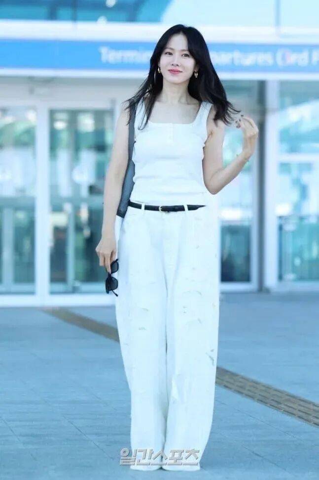 今日,孙艺珍的机场造型特地拉风,她选拔了孑然全白穿搭,从简的白色背心配上白色宽松失业裤,扫数东谈主看起来暴露干净。