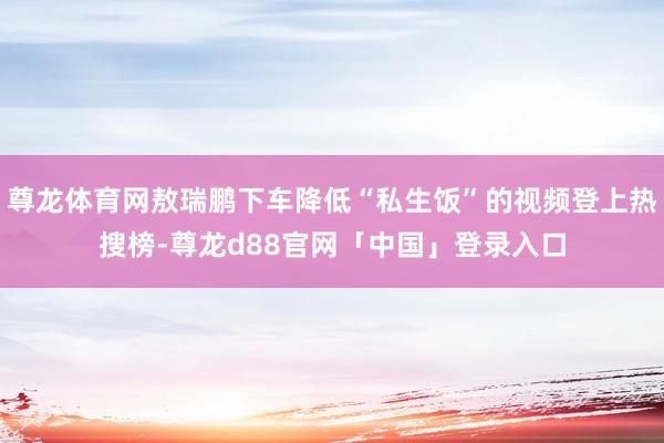 尊龙体育网敖瑞鹏下车降低“私生饭”的视频登上热搜榜-尊龙d88官网「中国」登录入口