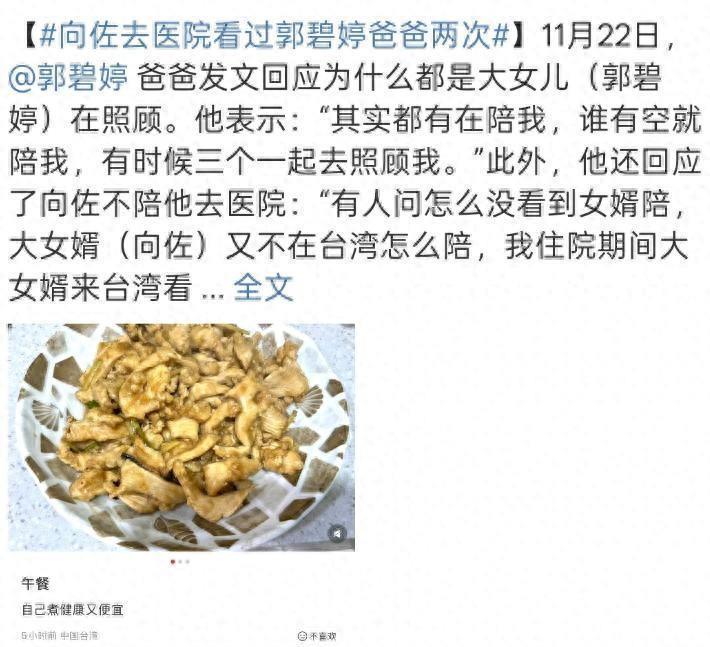 11月22日,郭碧婷的父亲在社媒上复兴了一些网友们相比眷注的问题。