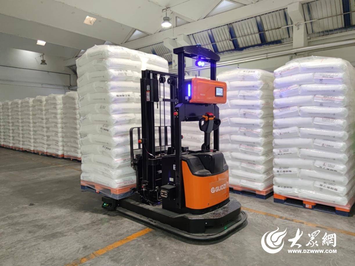图为:皆鲁石化树脂部智能搬运库房,是中国石化首个AGV智能搬运库房--孟波摄