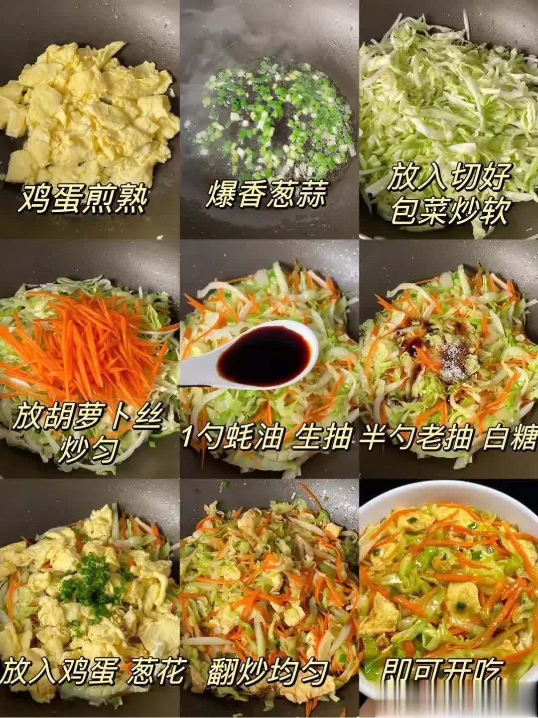3. 调味:加生抽、小数盐,倒入鸡蛋翻炒均匀。懒东说念主版:包菜切丝,鸡蛋炒碎,加一勺老干妈拌着吃,5分钟贬责!