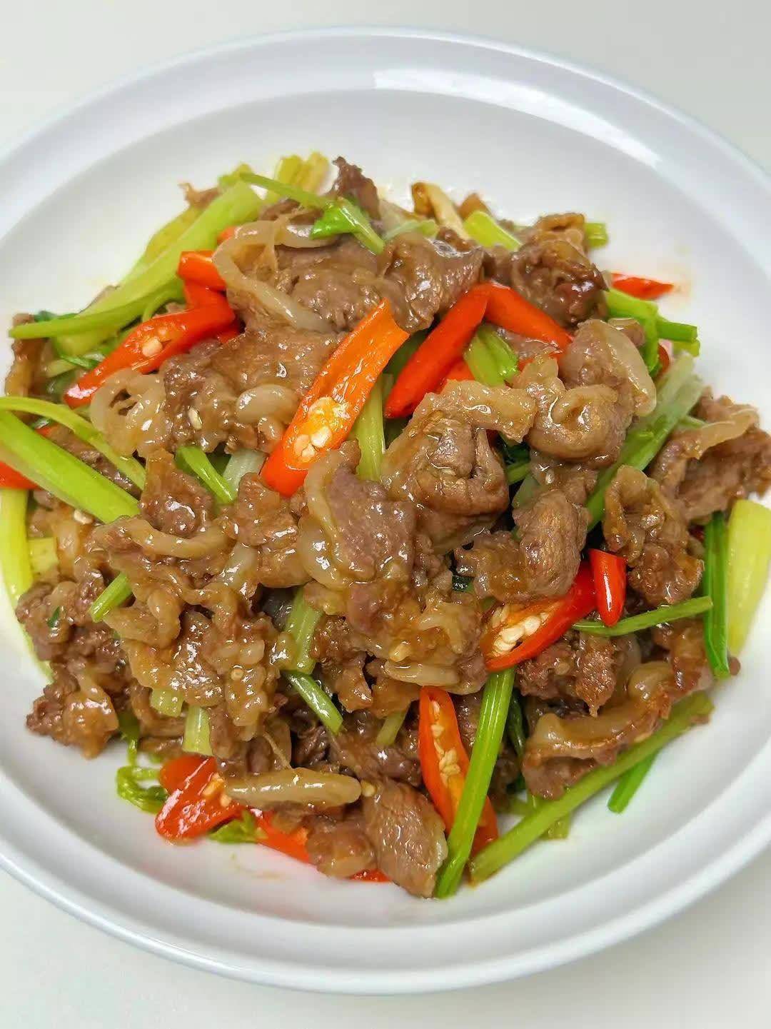 三、西芹炒肉——清热降火,缓解咽干咳嗽
