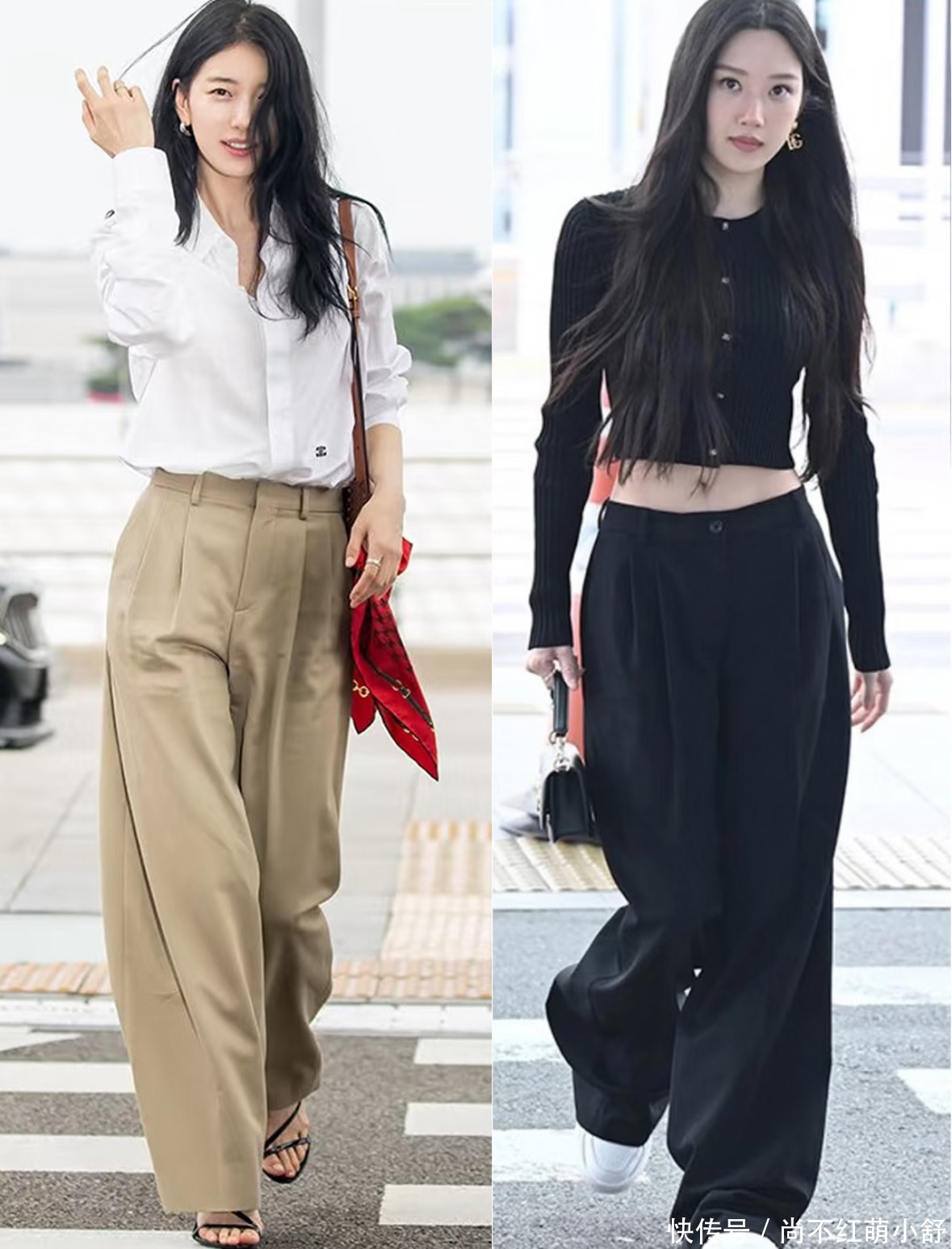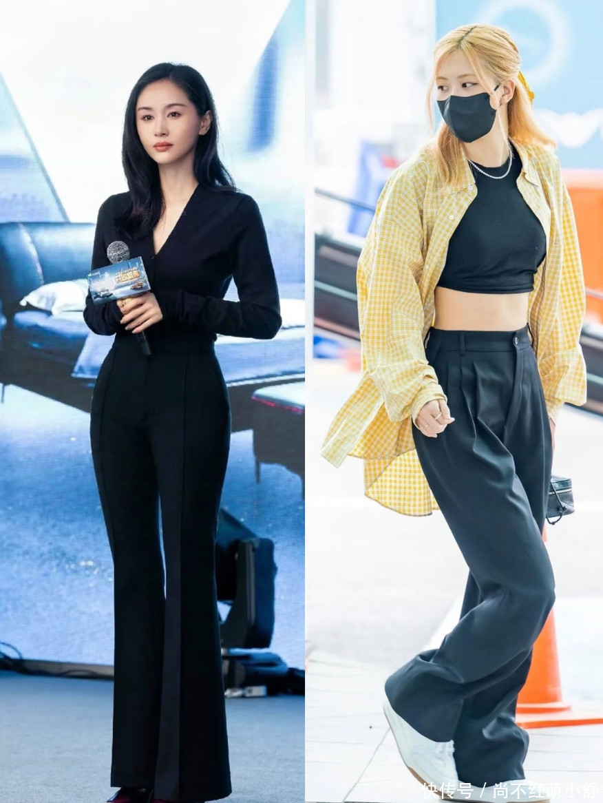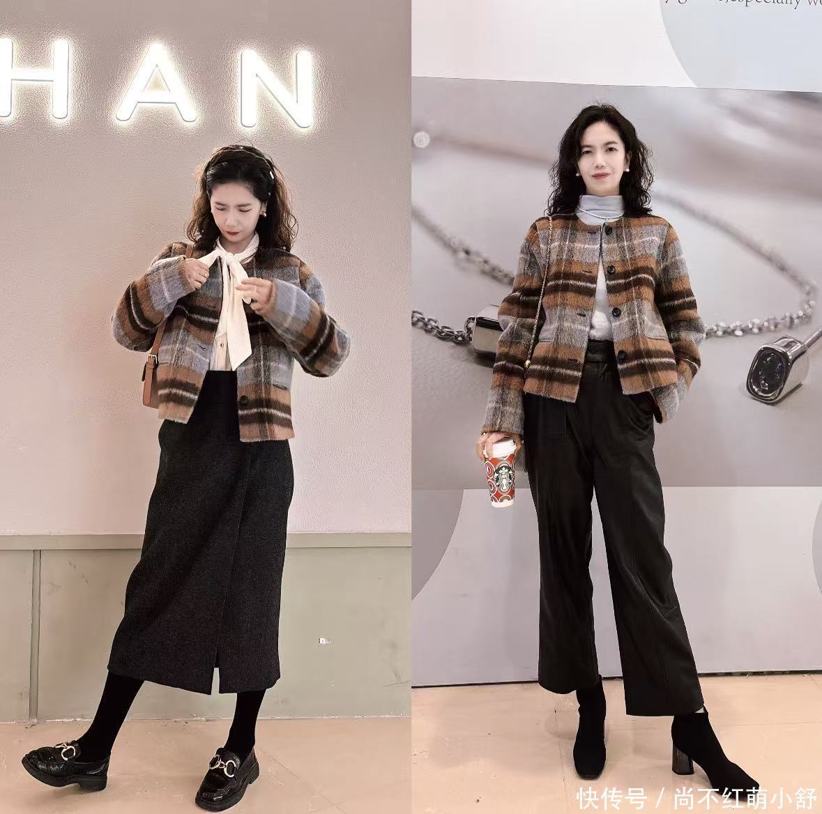 对比遵守:短款外衣+高腰裤 vs 长款外衣+低腰裤,前者平直拉高5cm,后者秒变“小矮东说念主”,一目了然!