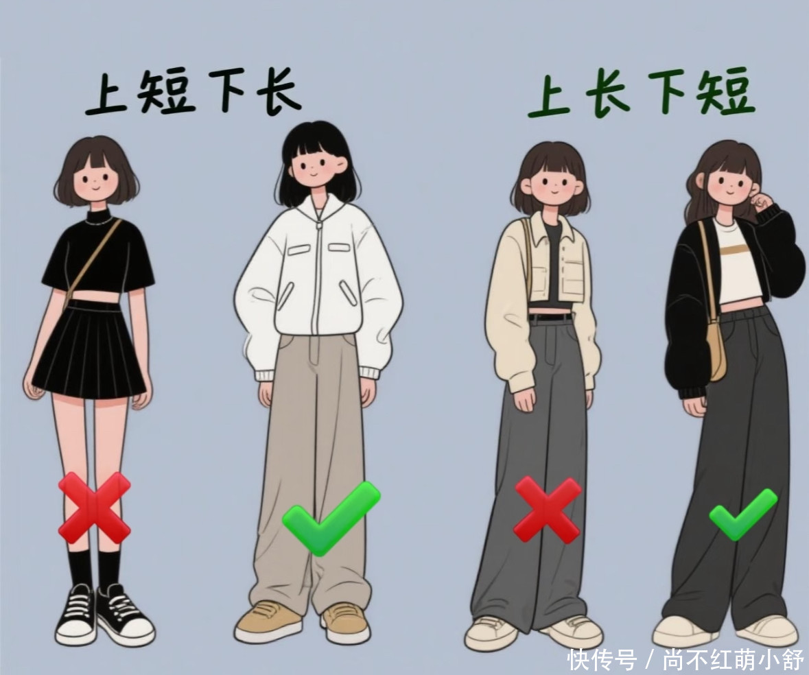 小个子穿衣诀窍2:优化“躯壳比例”,视觉拉长10cm不是梦!光有腰线还不够,全身比例合作才调“显高不突兀”。小个子秋冬穿搭要记取:上短下长、上长下短、上紧下松、上松下紧、同色蔓延,这些“比例妙技”照着穿,纯粹穿出“黄金躯壳”!