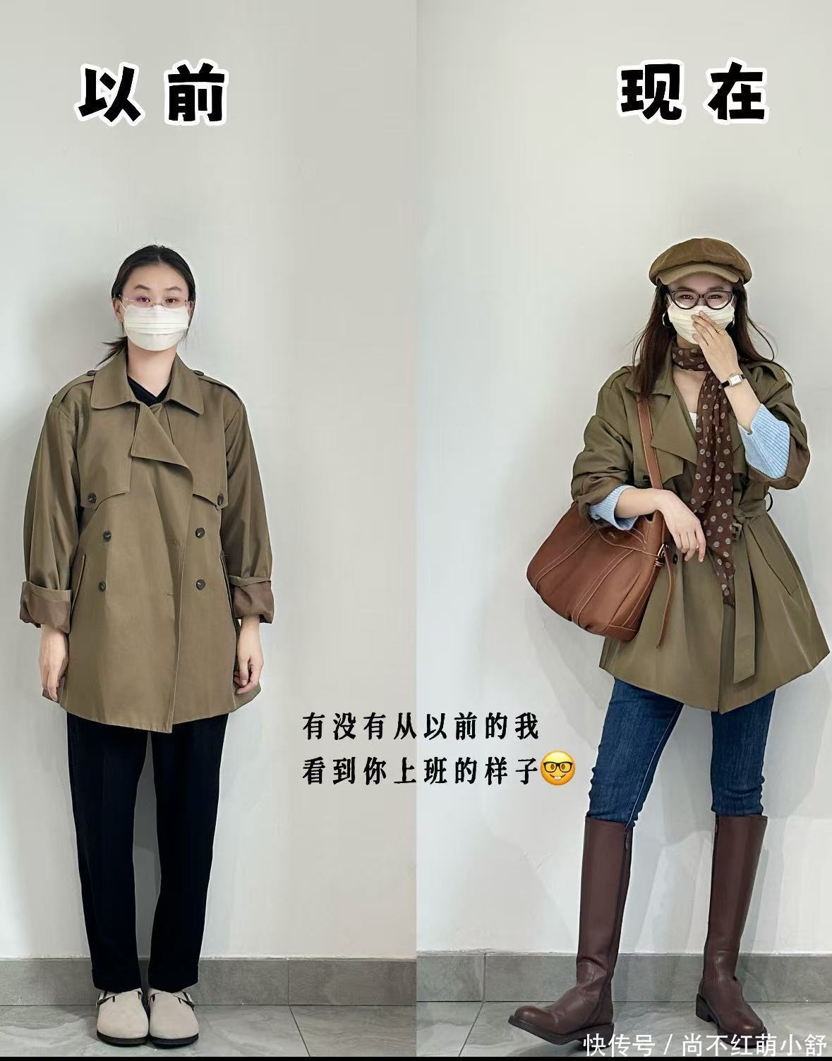 ✅ 妙技4:短款外衣=“转移腰线”,长度卡在腰线以上记取公式:短款外衣(衣长≤50cm)+ 高腰下装 = 胸以下全是腿秋冬外衣别盲目选长款!小个子选短款外衣,长度到腰线以上、肚脐隔邻最好,比如: